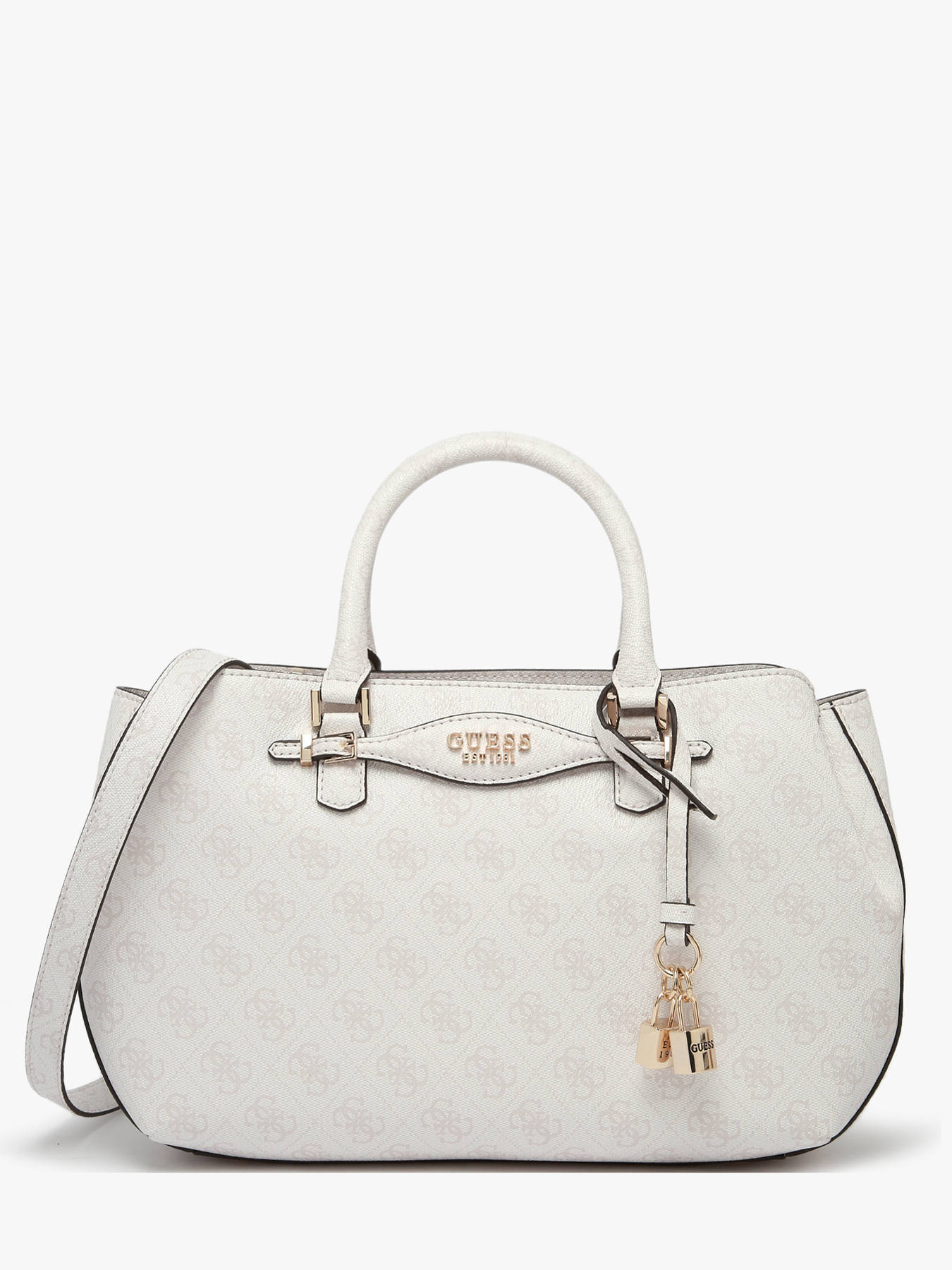 The KATYA Guess handbag, crafted from coated canvas, combines practicality and contemporary style. Its elegant design features a main compartment, two simple interior pockets, and a zip pocket, providing secure storage for your essentials. On the exterior, one front pocket and two back pockets offer quick access to everyday items. The zip closure ensures effective protection, while the adjustable and removable shoulder strap allows for versatile carrying—handheld or crossbody. With a 10.5 cm handle height, the KATYA is perfect for daily use, balancing comfort and functionality. Lightweight and durable, this bag merges elegance with practicality, making it an ideal accessory to enhance urban outfits with a modern, refined touch.