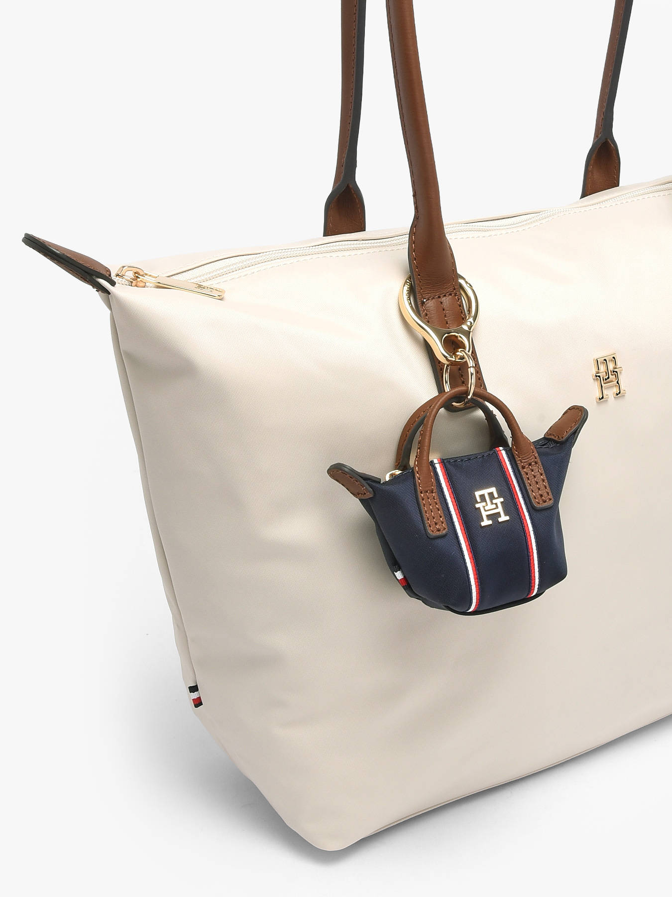The TOMMY HILFIGER key holder in nylon with leather trim combines modern style with practical functionality. Its zip closure keeps your keys and small essentials secure while allowing quick and easy access. Compact and lightweight, it easily fits in a bag or can be carried by hand, helping you organize your keys efficiently. The combination of durable nylon and refined leather ensures longevity and elegance, adding a contemporary touch to your everyday accessories. Versatile and practical, this key holder is perfect for daily use, whether for personal keys, office keys, or small essential items. Its quality and meticulous finishes reflect TOMMY HILFIGER craftsmanship, making this model a stylish, functional, and durable accessory, ideal for complementing your bags and accessories with sophistication.