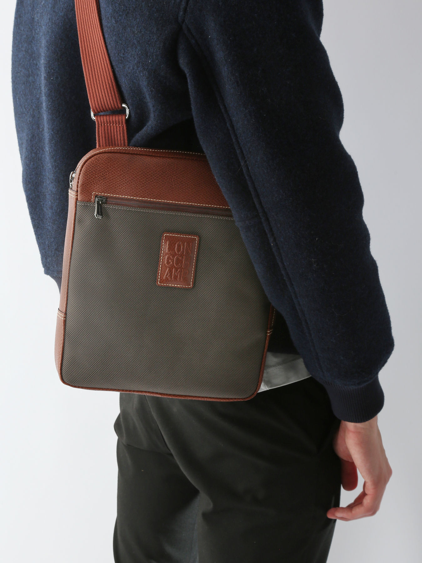 Ce sac porté travers Lonchamp dispose de poches extérieures et d'un aménagement fonctionnel pouvant accueillir une tablette numérique, idéal pour avoir l'essentiel à portée de main. Ligne emblématique de la Maison, BOXFORD incarne une élégance discrète. Sobre et distinctif, ce modèle se pare d'un marquage Longchamp rectangulaire embossé dans le cuir, et de surpiqûres en contraste, pour une allure raffinée. Cette toile double-ton s'habille d'une garniture en cuir de Russie, pour un riche effet de relief.