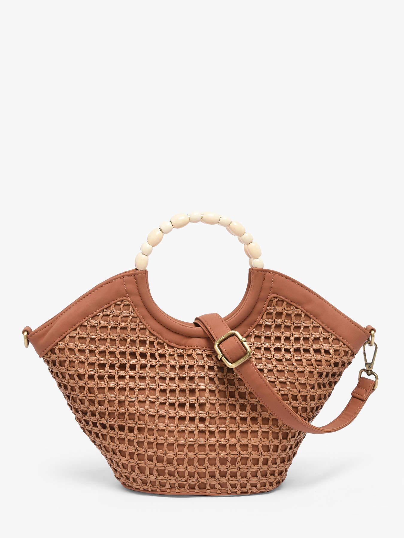 Le sac bandoulière WOOMEN petit format de la ligne Neflier Estival allie élégance, praticité et esprit estival. Sa matière principale en polypropylène garnie de polyuréthane recyclé, associée à la doublure en coton et lin, assure solidité et légèreté. Les finitions précieuses et la poignée recouverte de perles apportent originalité et raffinement au modèle. Ce sac bi-matière dispose d’une fermeture zippée et d’une bandoulière amovible en polyuréthane pour un porté modulable selon vos envies. Le logo en résine doré complète le design, faisant de ce sac un accessoire fonctionnel et stylé, parfait pour compléter vos tenues estivales.