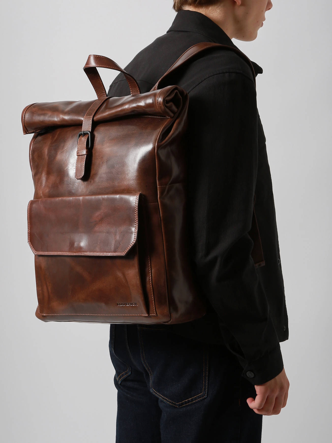 The MAVERICK business backpack in buffalo leather combines elegance and efficiency for your workdays. Its structured design includes a front and a back pocket for quick access to essentials. Inside, it features one open pocket, one zip pocket, a dedicated pen holder, and a padded compartment for laptops up to 15.6"". Adjustable straps offer optimal comfort, while the rear trolley sleeve allows for easy attachment to rolling luggage. Ideal for professionals on the go.